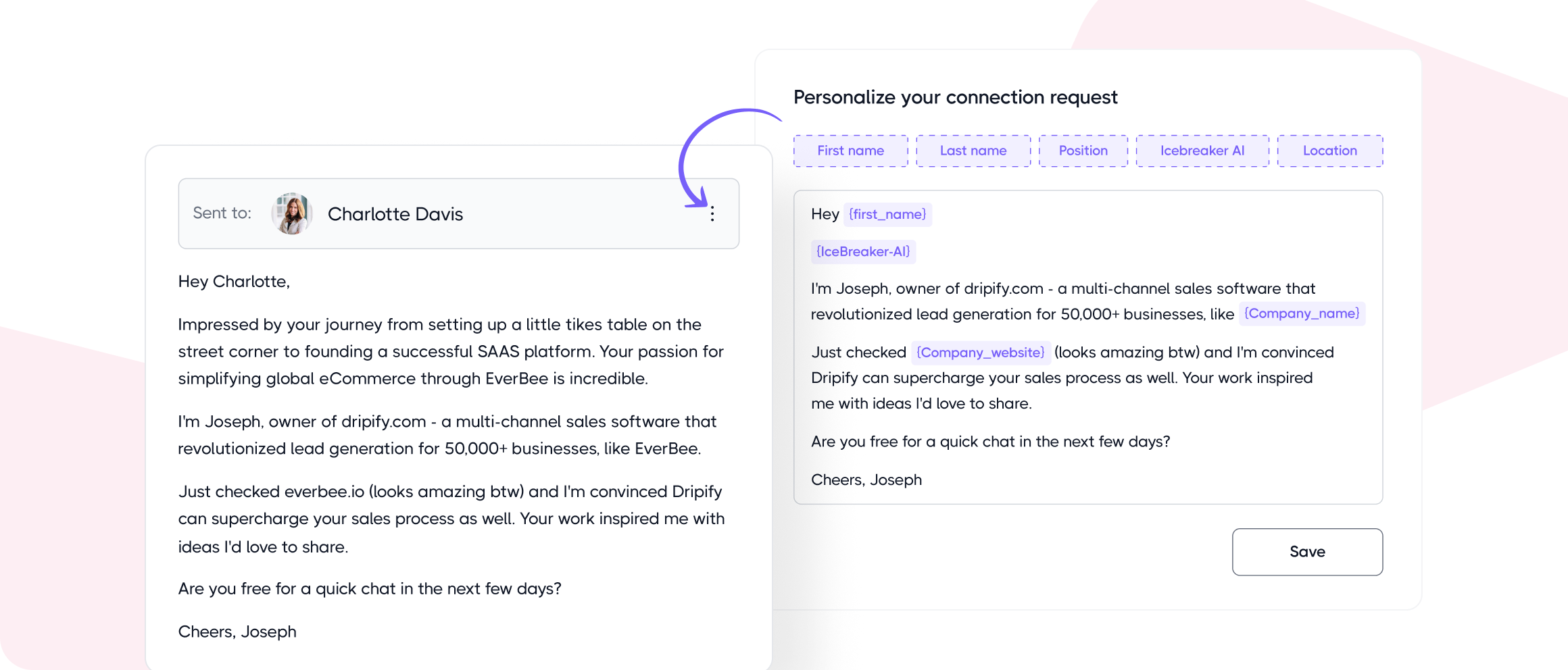 Sending hundreds of generic LinkedIn messages and emails to your leads won’t make a difference today. Due to the advanced personalization capabilities of Dripify, you can significantly improve quality and convert more
