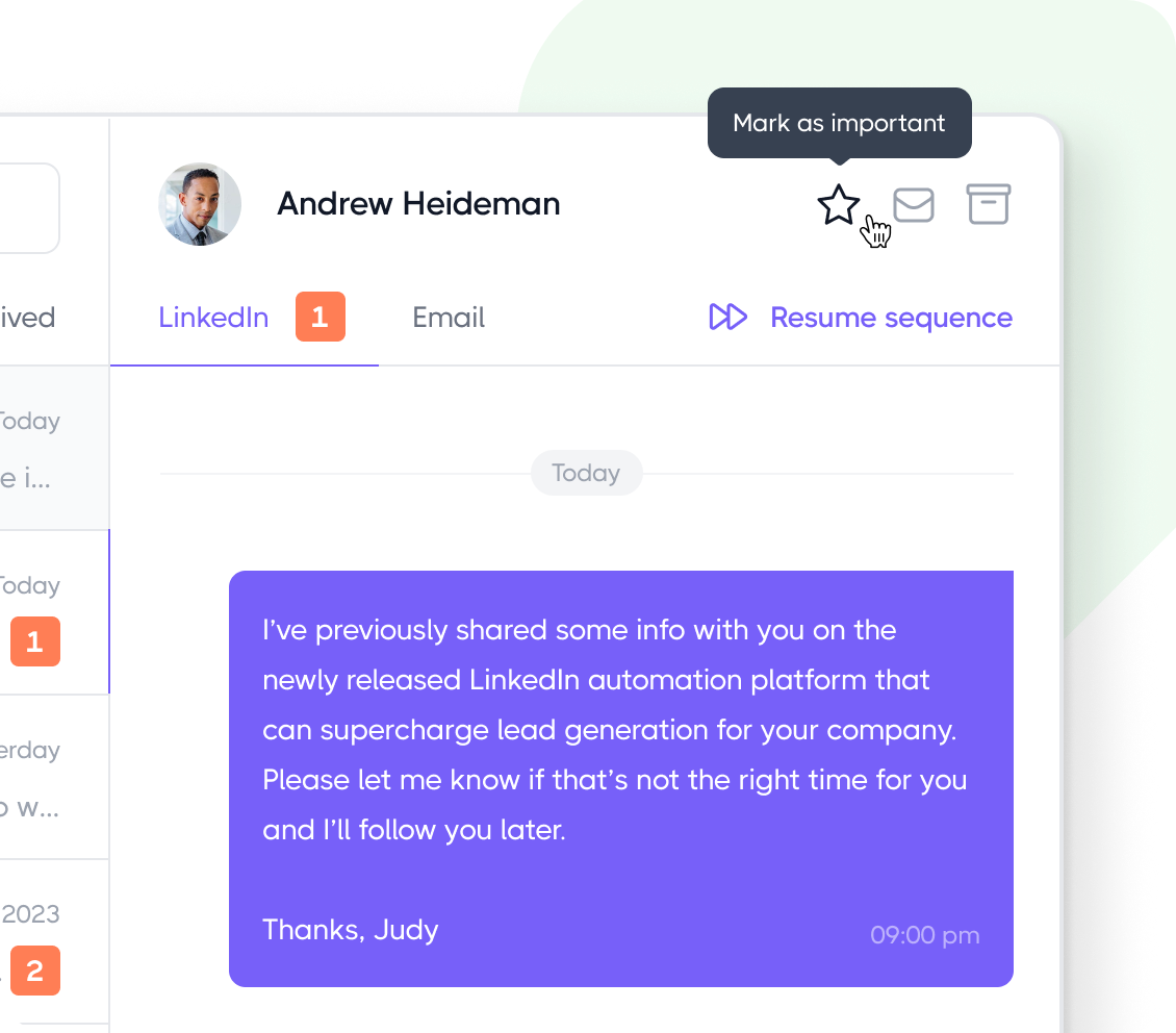Respond faster and close more deals with a dedicated multichannel inbox that centralizes all your lead conversations from LinkedIn and email in one place